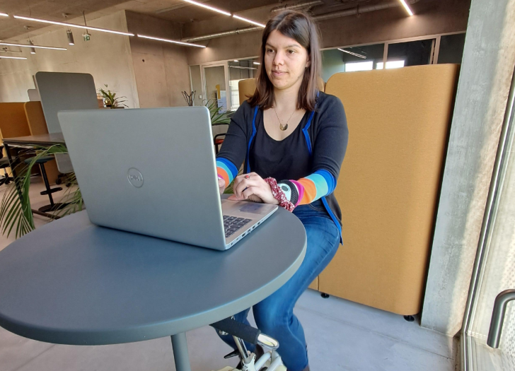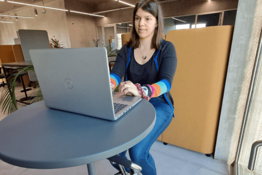 Installé à proximité d’une table haute, il permet de s’installer confortablement avec son ordinateur ou son téléphone, tout en pédalant tranquillement. L’idée est simple : profiter des temps d’appel pour se mettre en mouvement, favoriser le bien-être au travail et casser la sédentarité.